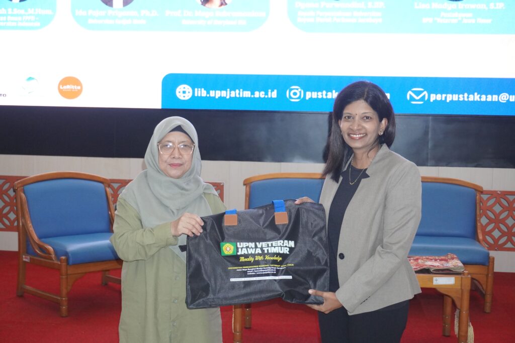 Sesi diskusi berlangsung dinamis dengan menghadirkan perspektif lintas negara. Nama-nama besar seperti Ida Fajar Priyanto, Ph.D (UGM) dan Prof. Dr. Mega Subramaniam (University of Maryland, USA) berbagi pandangan mengenai masa depan literasi yang dibarengi dengan adanya AI. Sesi tersebut dipandu secara langsung oleh Kepala UPA Perpustakaan UPN “Veteran” Jawa Timur saat ini yakni Dr. Dewi Khrisna Sawitri, S.S., S.Psi., M.Si., CHRM